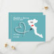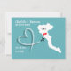 Un faire-part de mariage amusant pour les couples qui se marient sur l'île grecque de Corfou avec une carte en silhouette blanche sur fond sarcelle avec de doux cœurs d'amour rouges et si facile à personnaliser avec vos noms et message personnels