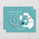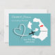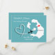 Un faire-part de mariage amusant pour les couples qui se marient à Santorin avec une carte en silhouette blanche sur fond sarcelle avec de doux cœurs d'amour rouges et si facile à personnaliser avec vos noms et message personnels