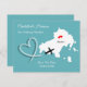 Un plaisir de sauver la date pour les couples se marier à Skiathos avec une carte en silhouette blanche sur turquoise avec coeur d'amour rouge sucré et si facile à customiser avec vos noms personnels et message