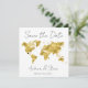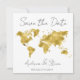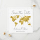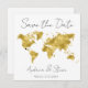 Carte moderne "Save the Date" idéale pour votre mariage de destination. Carte du monde en feuille d'or Faux. Placez le coeur où vous voulez