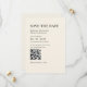 Détails élégants et simples & Code QR Mariage Enregistrer la date. À compléter avec vos détails facilement et rapidement. Si vous souhaitez modifier le style de police, la couleur ou le placement du texte, cliquez simplement sur le bouton "Customiser plus".