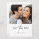 Cette deux photo enregistrer le faire-part de mariage date dispose d'une moderne enregistrer la typographie date. Le dos a une place pour une photo et une zone de texte pour tous vos détails.