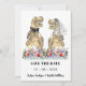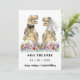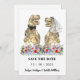 Dégustez vos invités avec ce mariage amusant sur le thème des dinosaures, sauvez la date avec la mariée T-Rex et le marié debout dans une prairie fleur sauvage colorée. Facile à customiser avec les noms des mariés et des mariés et la date du mariage. Fun T-Rex marié et des illustrations de mariés avec script de typographie moderne whimsical. Oeuvre originale unique de l'artiste Catherine Sweetman