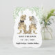 Dégustez vos invités avec ce mariage de dinosaures amusant sauvez l'invitation de la date avec T-Rex marié et marié avec aquarelle Jurassic jungle feuillage. Facile à customiser avec les noms des mariés et des mariés dino et la date du mariage. Aquarelle Tyrannosaurus Rex illustrations de mariée et de mariée avec typographie moderne. Dinosaure jurassique unique oeuvre originale de l'artiste Catherine Sweetman