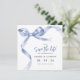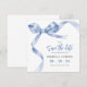 Annoncez votre grand jour avec style grâce à nos cartes de sauvegarde de date de diplôme, mettant en vedette un ruban bleu aquarelle noué en un beau nœud. Personnalisez facilement et choisissez un téléchargement numérique pour un mélange parfait de moderne et de classique. Ajoutez-les à votre papeterie de célébration et assurez-vous que vos proches font partie du moment.