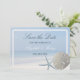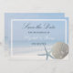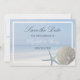Ces cartes de date sont parfaites pour tout couple qui planifie un mariage élégant à la plage. L'aménagement est composé d'un dollar de sable crémeux et d'une étoile de mer bleu clair avec un arrière - plan de plage bleu pâle. Le design est complété par une bordure de sable délicate. Le design simple et frais peut être personnalisé pour votre événement spécial et sera le faire-part parfait pour toute fête sur la plage, y compris : douches nuptiales, fiançailles, wedding showers, fêtes d'anniversaire et bien plus encore.