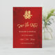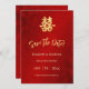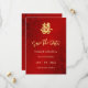 Un double symbole de bonheur artistique en or sur un arrière - plan floral rouge chatoyant. Enregistrez le texte de la date dans un élégant script manuscrit. Produits mariages chinois correspondants disponibles.