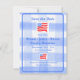 Carte ÉPARGNEZ LA DATE au drapeau américain à carreaux bleu aquarelle peinte à la main avec des polices bleues pour compléter le fond à carreaux gingham amusant et informel et le drapeau américain fantaisiste. Design intemporel !