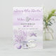 Orchidée violet Tones Dreamy doux arrière - plan de plage montrant la mousse de mer sur le sable - une étoile de mer, corail, huître avec une perle à l'intérieur et un escargot de mer ornent le premier plan. Vous donne envie de lancer vos chaussures et de courir à la plage - Parfait mariage de plage de destination ou autre invitation de fête - tous les champs de texte sont personnalisables, pour changer à ce que vous êtes en train de faire la fête.