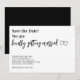 Vous partez en mode décontracté ? Utilisez cette drôle d'annonce de sauvegarde de date en noir et blanc avec Nous sommes Enfin Mariés ! Ajoutez les noms, date et lieu pour vous assurer que les gens sauvegardent votre date spéciale. Voir les articles coordonnés dans notre boutique, Enchanted Finch.