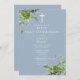 Cette élégante eucalyptus vert botanique bleu poussiéreux première communion sainte sauf la date invitation peut être personnalisée avec votre information dans la typographie chic avec des initiales monogrammes au verso. Conçu par Thisisnotme©