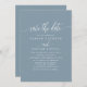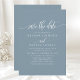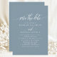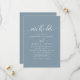 Cette minimaliste sauvegarde la carte date dispose de belles teintes bleues poussiéreuses jumelées à un élégant script de calligraphie. Avec un design moderne et simple, cette carte polyvalente est parfaite pour toute saison - printemps, été, hiver ou automne. Il dégage une atmosphère classe et élégante, parfaite pour un thème mariage romantique, chic ou sophistiqué.