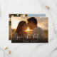 Cette élégante photo de script coeur enregistrer la carte de date comprend votre photo et un script enregistrer la date au-dessus de vos noms, date et lieu. Le verso comporte une photo et un message supplémentaires sur un arrière - plan bleu poussiéreux. Conçu par Thisisnotme©