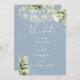 Cette élégante invitation florale bleu poussiéreux sauvez la date peut être personnalisée avec vos informations dans la typographie chic. Conçu par Thisisnotme©