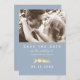 Save The Date Dusty Blue Gold Lovebirds Photo