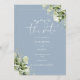 Cette élégante invitation à la verdure botanique bleu poussiéreux et fleurie sauve la date peut être personnalisée avec vos informations dans la typographie chic avec votre site mariage code QR et les détails sur l'inverse. Conçu par Thisisnotme©