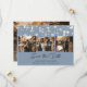 Elégante photo de mariage bleu poussiéreux et personnalisée enregistrer les cartes de date avec une police de script moderne. Notre mariage, sauf la date, présente un montage photo de 4 images contre un arrière - plan bleu poussiéreux orné de lampes à cordes. Personnalisez facilement ce bleu poussiéreux enregistrez la carte de date avec vos images et les détails du mariage, y compris un site Web mariage, si vous le souhaitez. Pour des demandes personnalisées, envoyez-nous un message.