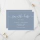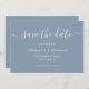 Mariage bleu poussiéreux moderne et personnalisé enregistrer les cartes de date avec une police de script moderne. Éléments correspondants disponibles. Les demandes personnalisées sont les bienvenues.