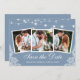 Dusty Blue String Lights et dentelle 3 Photo Enregistrer la Faire-part Fiançailles Date