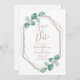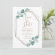 Ces faire-part de mariage botaniques "save the date" dégagent de l'élégance. Ce modèle de design moderne présente les mots "Save the Date" dans un script brun café écrit à la main avec vos détails de mariage au centre pour que vous puissiez personnaliser, bordés d'un cadre géométrique accentué par une verdure d'eucalyptus peinte à la main à l'aquarelle. Le verso de la carte comporte vos initiales monogrammées pour que vous puissiez les personnaliser. Meilleurs vœux pour votre mariage ! Conçu par Susan Coffey.