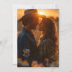 Économie Rustique Moderne Photo Enregistrer la Date - Un enregistrement de date unique et occidental avec une illustration dessinée à la main d'un cowboy et d'une cowgirl avec votre photo préférée au verso en pleine page. Sera disponible dans la collection dans diverses couleurs occidentales. Affiché en sarcelle.