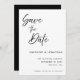Une annonce de mariage à save the date avec une écriture manuscrite élégante. Cette carte de save the date présente un texte manuscrit élégant avec un thème simple et minimaliste en noir et blanc. Personnalisez le texte avec tous les détails de votre jour spécial.