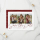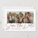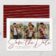 Avec trois photos verticales et un script moderne écrit "enregistrer la date", cette carte est le moyen idéal pour annoncer votre fiançailles et le prochain mariage à vos amis et votre famille. Le chic texte rouge marron est audacieux et moderne mais toujours sophistiqué. Le texte personnalisable sur le devant a de la place pour les noms, la date, l'emplacement et d'autres informations comme un site Web mariage. Le dos est assorti d'un marron et d'un motif blanc rayé. La couleur est modifiable en cliquant sur "Personnaliser".
