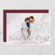 Annoncez votre mariage dans le style avec ces élégantes photos enregistrer les cartes de date. Le design comprend votre photo horizontale à fond de sang avec "Save the Date" en lettres bordeaux. Personnalisez la photo moderne enregistrer la carte de date avec vos noms, date mariage, emplacement du mariage et détails de l'invitation. Le verso de la carte contient des détails supplémentaires comme votre site mariage en lettres blanches sur un arrière - plan bordeaux solide.