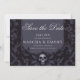 Sauvez la date avec cette élégance gothique inoubliable Mariage crâne Boho violet Sauvez la date modèle avec belle damas noir et violet arrière - plan. Appuyez sur "personnaliser ce modèle" pour ajouter votre propre texte personnalisé.
