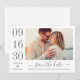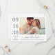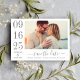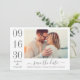 Un mariage moderne et élégant enregistrer les cartes de faire-part de date comporte une photo fiançailles horizontale avec un design typographique qui comprend des numéros de date de mariage audacieux et élégants avec un simple monogramme des noms de mariée et de mariée. Les tons gris et blanc du charbon de bois.