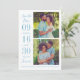 Un mariage moderne et élégant enregistrer la date Les cartes de faire-part comportent deux photos de fiançailles carré avec un design typographique qui comprend des numéros de date de mariage audacieux et élégants avec un simple monogramme des noms de mariée et de mariée. Accentué avec Forever dans le texte du script. Dusty / acier gris bleu et blanc schéma de couleurs.