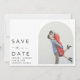 Notre Elegant Arch Photo Mariage moderne Enregistrer la carte Date est un choix intemporel et élégant pour annoncer votre journée spéciale. Cette conception consiste à placer vos souvenirs chers au premier plan et au centre, permettant à votre histoire d'amour de prendre le devant de la scène. Customisez avec deux de vos photos préférées et les détails de votre mariage sur le devant et le dos de la carte.