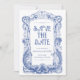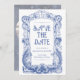 Save The Date Élégant Baroque Floral Mariage Colonne Bleue