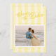 Annoncez votre date mariage avec notre mariage moderne mais élégant Enregistrer la carte Date dans une teinte oh-so-joli de beurre jaune. Ce design présente des rayures préppantes dans des teintes alternées de jaune beurre sur l'avant et le dos, ce qui donne une touche élégante et chic, tout en étant frais et tendance. Le design comporte "Save the Date" écrit dans un script de calligraphie classe avec une note nostalgique, vintage et une touche de fantaisie. Vous êtes sûr de wow vos proches avec cette carte unique enregistrer la date!