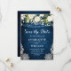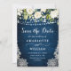 Save The Date Elégant blanc Roses dentelle Bleu Bois Rustique Ma