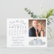 Cette belle carte Save the Date présente un design boho chic rustique avec un ensemble de roses d'aquarelle peints à la main, de fleurs et de feuilles d'eucalyptus dans les tons bleu poussiéreux et vert sauge. Le côté gauche de la carte est un calendrier personnalisable de votre mois mariage avec un coeur autour de votre journée spéciale. Il y a de la place pour vos noms, l'emplacement et une petite note. Sur la droite, il y a de la place pour votre photo au-dessus des fleurs. Élégante, élégante et chic, cette carte est un excellent moyen de faire connaître à vos amis et à votre famille la date de votre journée spéciale.