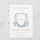 Save The Date Elégant bleu Fleur sauvage Aquarelle Monogram Cres