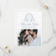 Annoncez votre prochain mariage dans le style avec cette photo bleue classique enregistrer la carte de date. L'avant présente vos initiales monographiques personnalisées à l'intérieur d'une crête florale bleue douce sur un arrière - plan blanc. Vos noms apparaissent en calligraphie bleue élégante, suivie de votre date et de votre emplacement mariage. Une photo fiançailles horizontale en dessous ajoute une touche personnelle et mémorable. Au verso, affichez une photo fiançailles verticale avec un code QR pratique que les clients peuvent scanner pour accéder à votre site Web mariage et à toutes les instructions personnalisées. Un choix intemporel et polyvalent, parfait pour les mariages côtiers ou les célébrations classiques.