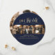Elégant bleu marine et or mariage 4 photo enregistrer les cartes de date avec un titre de script en faux or moderne. Personnalisez facilement ce mariage bleu marine enregistrez la date avec vos images et les détails du mariage, y compris un site Web mariage.