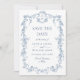 Save The Date Elégant bleu Toile Français Floral Mariage QR code