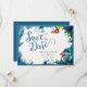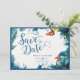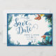 Elegant Blue Green Botanical Butterfly Save the Date Horizontal Wedding Invitation .