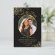 Save The Date Elégant Boucles d'or Oval Photo Black Mariage