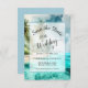 This beautiful wedding Save the Date card features a beautiful design with script calligraphy and a watercolor landscape of a tropical beach with turquoise or aqua colored water, pristine sands, and palm trees. Elegant, stylish, and chic, this card is a great way to let your friends and family know to save the date for your special day. Perfect for an island or coastal wedding.
