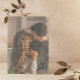 Envoyez vos annonces de fiançailles avec style avec ce Save the Date de mariage élégant noir et blanc, avec une couche de texture de vélin faux sur votre photo de fiançailles de couleur claire. Le verso de l'invitation présente une texture populaire à l'aquarelle noire et blanche, et un lien de code QR vers votre site web de mariage. Conçu avec des invitations de mariage assorties. Assurez-vous de suivre notre magasin si vous aimez ce design ! NOTE DU CRÉATEUR : Le "vélin superposé" sur ce produit est un effet numérique." Copyright Anastasia Surridge pour Anastasia Designs, tous droits réservés.