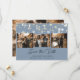 Elégante photo de mariage bleu poussiéreux et personnalisée enregistrer les cartes de date avec un titre de script moderne. Notre mariage, sauf la date, présente un collage photo de 3 images contre un arrière - plan bleu poussiéreux orné de lampes à cordes sur le devant et une photo à l'arrière. Personnalisez facilement ce bleu poussiéreux sauvegardez la carte de date avec vos images et les détails du mariage. Pour des demandes personnalisées, envoyez-nous un message via Zazzle conversation.