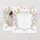 Step into a world of timeless elegance with our exquisite Baroque wildflower wedding photo save the date card. A regal crest sits at the center of this design, encircled by soft pastel watercolor blooms. This double bordered crest encloses your wedding details in sophisticated harmony. Perfect for couples who seek a design that whispers luxury, romance, and the charm of old-world grandeur. Let your wedding begin with a design as breathtaking as the day itself. Created by Simply Farmhouse Press.