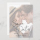 Ce mariage moderne et minimaliste Save the date card dispose d'une façade élégante. Il joue avec la simplicité d'un design typographique noir et blanc. À l'arrière, vous pouvez ajouter les informations de votre site Web mariage ainsi qu'un code QR à analyser pour vos invités. Un choix parfait pour les couples qui apprécient l'élégance épurée et moderne. Pour tout besoin de design spécial, n'hésitez pas à contacter directement le designer en envoyant un courriel à choosehappystudio@yahoo.com