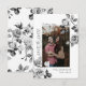 Annoncez votre jour spécial avec cette élégante carte Enregistrer La Date, avec un design floral classique noir et blanc et un espace pour votre précieuse photo de fiançailles. Parfait pour un thème de mariage intemporel et sophistiqué.