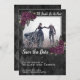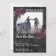 Darkly belle enregistrer la carte de date avec Till Death Do Us Part dire, roses violets foncés, et un arrière - plan motif en diamant noir. Typographie de script. Personnalisez avec votre propre photo.