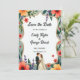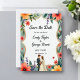 Cette élégante aquarelle fleurie à sauver la date invitation est parfait pour un mariage moderne. Le design romantique présente un cadre floral aquarelle élégant avec une illustration de mariée et de mariée et de calligraphie noire sur un arrière - plan blanc.